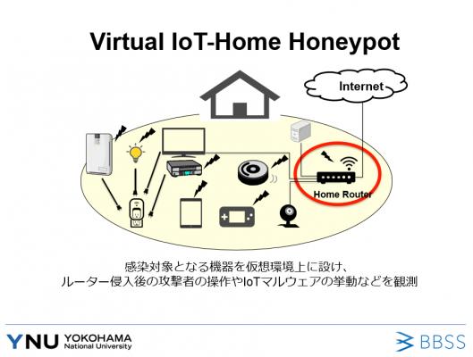 横浜国立大学とBBSSは、2017年6月からIoTサイバーセキュリティの共同研究に取り組んでおり、2017年度の研究で得られた知見を活用し、IoT機器を対象としたサイバー攻撃が、一般家庭やSOHOのネットワーク環境に与える影響について、2018年度も引き続き研究を行っていきます。