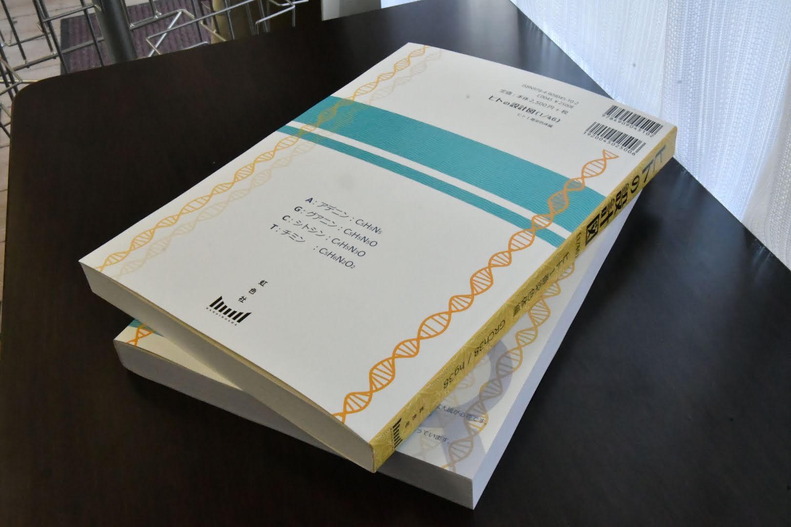 本書は、ヒトの染色体46本(棒状のため)のうち、最も長いもの(ヒト1番染色体)を下記4つの物質(塩基)と、未確定(N)で記述しています。
