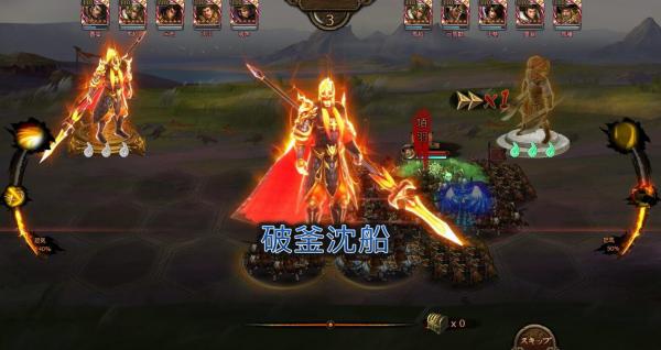 3ラウンドごとに発動。兵力が最も低い敵軍部隊に項羽攻撃300%相当のダメージを2回与え、更に灼熱効果を1ラウンド与える。灼焼効果を受けた敵軍部隊は行動前に項羽攻撃300%相当のダメージを受ける。(専属装備をセットで装備すると、攻撃ダメージが340%に増加し、灼焼効果が更に1ラウンド追加)