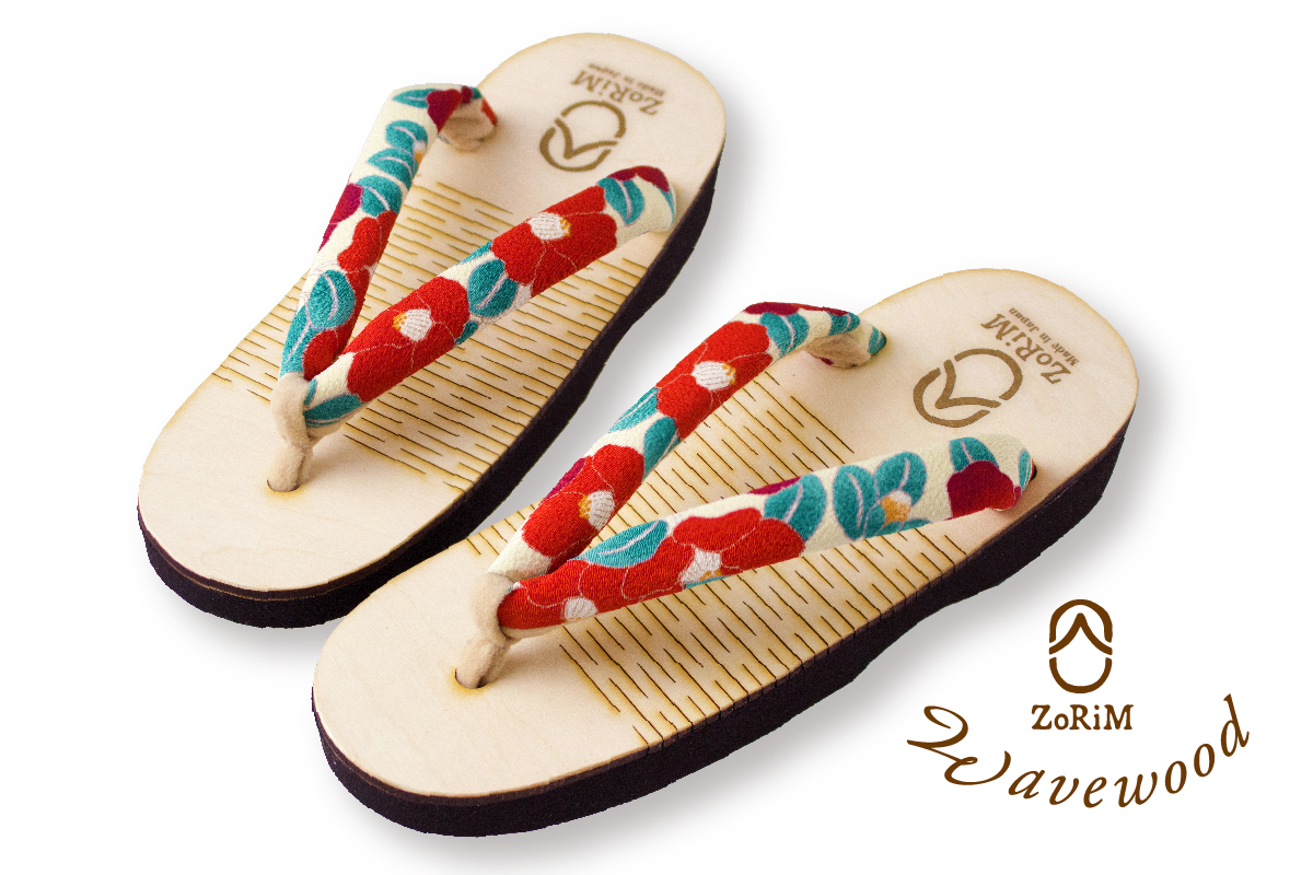 「ゾリム・ウェーブウッド」は、木下駄の質感はそのままに、なら下駄屋の独自技術である「レーザースリット製法」により、たわみ・弾力性をもたせ、底材には柔らかくて軽く、ほどよい滑り止め効果のあるEVA樹脂を採用した履物です。