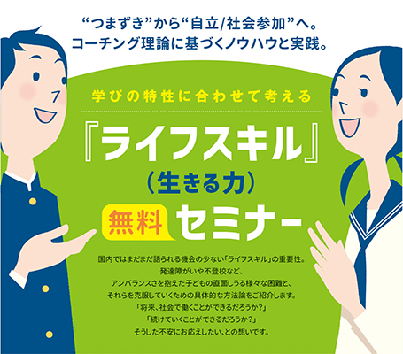 神村学園東日本教育サポートセンターでは、この度、発達障がいの可能性のある子どもや、その保護者の方を対象とした講演会『ライフスキル(生きる力)無料セミナー』を開催いたします。