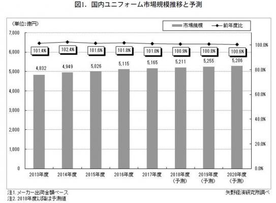 2017年度の国内ユニフォーム市場は前年度比101.0%の5,165億円