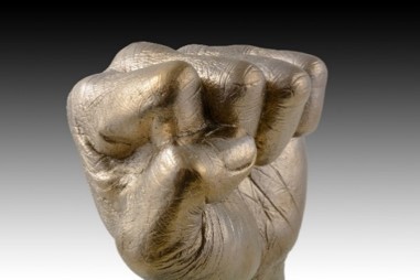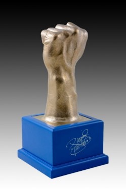 パッキャオ氏本人から型取って製作しており、手の「シワ」「血管」「毛穴」を忠実に再現しました。材質はシルジン青銅で黄金色の輝きを放っています。オール金属の為、重厚感・存在感も抜群です。