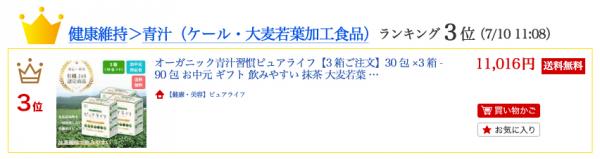 「オーガニック青汁習慣ピュアライフ」は楽天市場に2018年6月1日(金)にオープンしたばかりで、わずか1ヶ月でのランクインとなります。