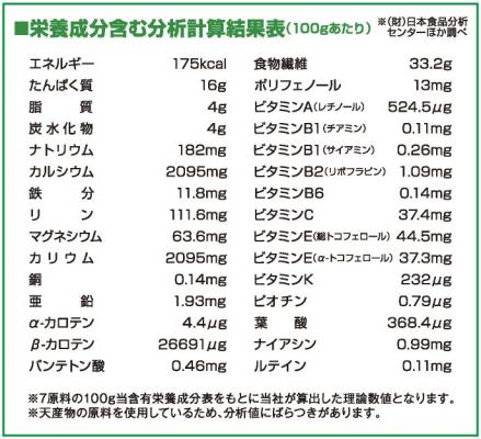 「オーガニック青汁習慣ピュアライフ」は成分表、(※ 添付資料参照)