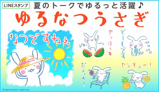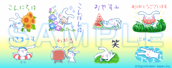 ゆる~いうさぎの夏にぴったりなスタンプ。ゆるくだらっとした会話をするのに使えます♪