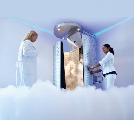 「クライオセラピー」は、「cryo(冷やす)」と「therapy(療法)」を合わせた言葉で、液体窒素を利用して-150~-120(※)の超低温になったブース内に1~3分間入って全身を冷やす冷却方法です。