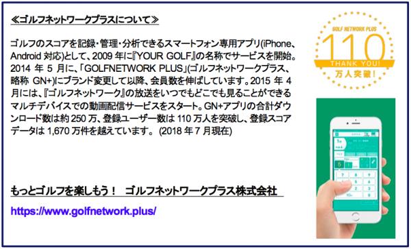 ゴルフネットワークプラス株式会社(東京都江東区・代表取締役社長 菅原 崇)が提供する登録ユーザー数110万人以上、多くのゴルファーが愛用する国内ダウンロード数No.1のゴルフアプリ「ゴルフネットワークプラス」(以下GN+、ゴルフスコア管理、動画配信サービス)では、2018年7月19日(木)~7月22日(日)にスコットランドのカーヌシティで開催される世界最古のメジャートーナメント「2018全英オープンゴルフ選手権」の全ラウンド計49時間のライブ配信を、7月19日(木)14時30分からスタートします。