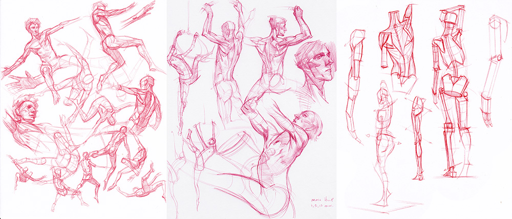 動きやひねりの加わったアナトミーを分析し、シェイプ(形状)やマッス(立体形状のパーツ)として解釈する方法を学びます。