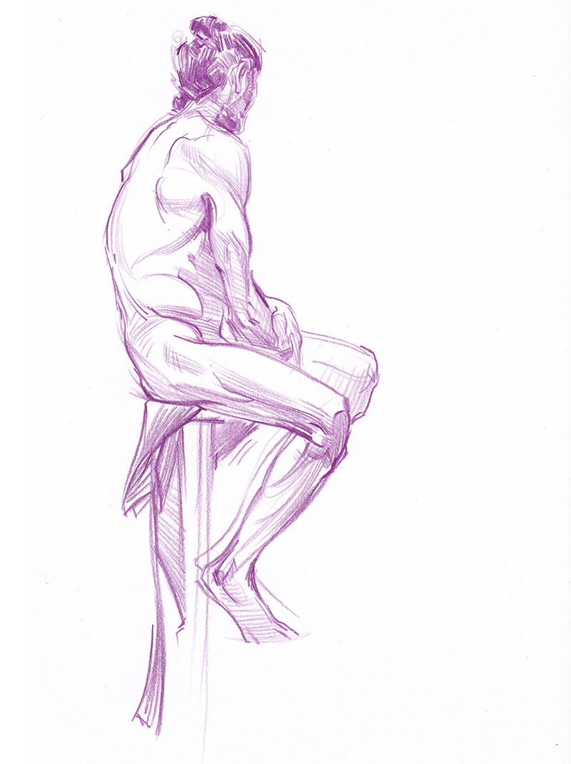 ポーズ1つだけを使い、前面および後面から描くデモンストレーションをお見せします。