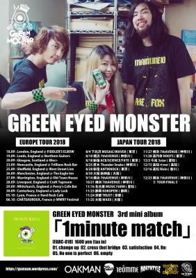 ガールズ・ボーカル POP PUNKバンド、GREEN EYED MONSTER が8月4日に、6曲入りMini Album『1minute match』を配信リリース、会場限定でCD販売を開始します。