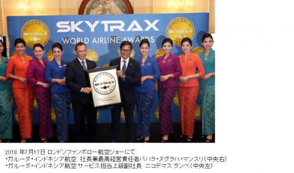 ガルーダ・インドネシア航空会社(本社:ジャカルタ、インドネシア 社長兼最高経営責任者:パハラ・ヌグラハ・マンスリ)は2018年7月17日(火)、ロンドン ファンボローエアショーで開催されたスカイトラックス社による「The World Airline Awards (ワールド・エアライン・アワード)」にて、世界で初めて2014年より5年連続で「The World's Best Cabin Crew(ワールド・ベスト・キャビンクルー)」の第1位に選出されました。
