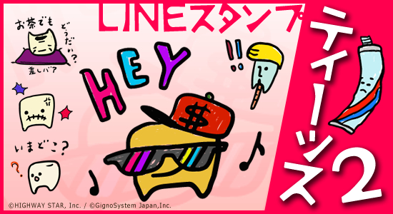 歯にまつわるゆかいなキャラクターたちがモチーフのアニメーションスタンプ、クリエイターズランキングで1位に輝いた『ティーッス!』の続編です。ロックなペインターYORKE.(OLDCODEX)による描き下ろし作品です。