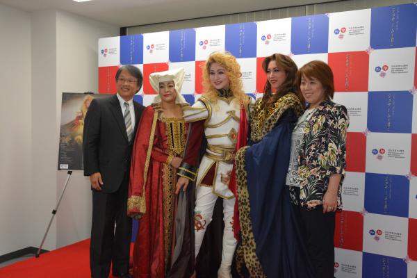 株式会社劇団往来(本社大阪市)ジャンヌダルク製作委員会主催による制作発表を2018年7月19日に行い、桜花昇ぼる、椿火呂花、河合美智子が舞台衣装に扮して登壇した。