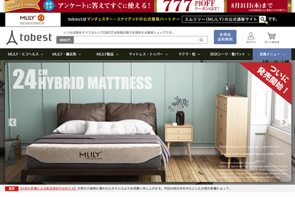 マンチェター・ユナイテッド公式マットレス&ピロー・パートナーの「MLILYエムリリー」の公式ショップ『TOBESTショップ』(株式会社新陽トレーディング)が開店1周年を記念した特別イベントをショップ内で行います。イベント内容としてはマットレスや枕が最大60%オフやtwitter開設としてフォロー数によって商品が増えるプレゼントなどを開催予定です。