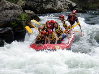 ラフティングとは楕円形のゴムボート(ラフト)を使って川下りを行うレジャスポーツです。アクティビティジャパンではガイドが乗り込む形で催行されるラフティングツアーの予約を承っております。体験したことがない方でも安心して参加することができます。
