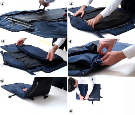 これを解決するため、PLIQOは開発されました。スーツを美しく持ち運ぶために開発された専用ハンガーとバッグの組み合わせにより、ジャケット、ズボン、シャツ、ネクタイやチーフなど一式を約B4サイズに収納。もちろんシワをつけることもありません。さっと開いてすぐに着ることができます。