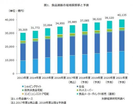 2017年度の食品通販市場は前年度比3.0%増の3兆5,985億円の見込