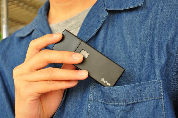 厚さ14ミリ,重量75グラムと他に類を見ない薄さ軽さでスーツなどの胸ポケットにも忍ばせても気になりません。