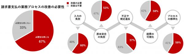 ■ 7割弱が請求書支払の業務プロセス改善が必要と回答、請求書内容の入力負担、経費の可視化、プロセス標準化に対する課題を抱えている