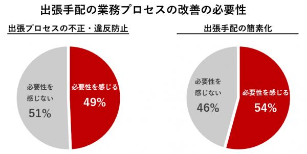 本調査により、中堅中小企業の約8割が直接費同様、間接費に関する業務プロセスの改善が必要であると感じていることが判明。特に経費精算業務、請求書支払業務においては、約7割が業務プロセスの改善が必要と回答。出張手配については、不正・違反防止のためのプロセスの厳格化と、手配の効率化という相反する課題を抱える企業が多数あることが分かりました。