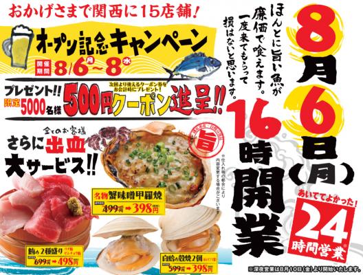 8月6日(月)16時開業