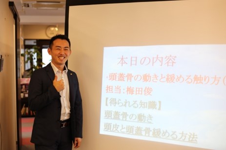当日は、頭蓋骨の動きの理解と緩める触り方を40分間、横隔膜と大腰筋の繋がりとケア方法を30分間、東洋医学・中医学の基礎を40分間、ご説明と体験を合わせて行いました。