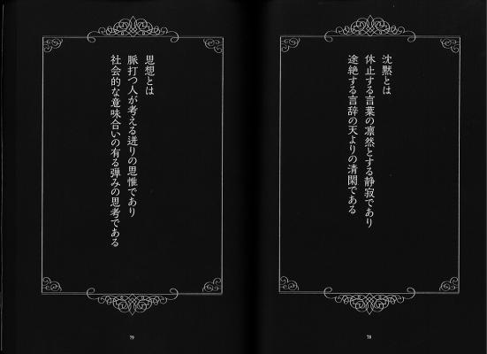 勿論「罰を宣告された哲学」に於いても哲学の言葉の深遠なる魂を貫き通して来たと思う。