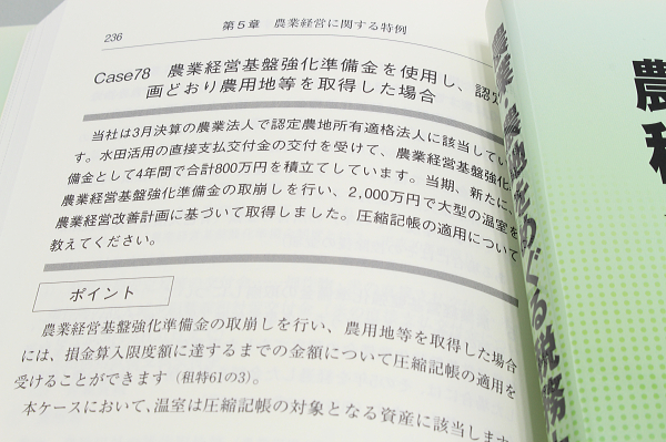 ◆農業や農地の具体的な状況を設定し、税務特例の適用のポイントや税務処理の方法を解説しています。