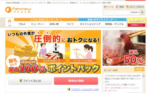 「ファンくる」は、2007年10月に開始した日本最大級の覆面調査・モニターサイトです。