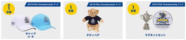 ・プレゼント賞品:全米プロゴルフ選手権公式グッズほか