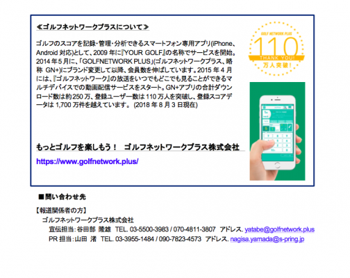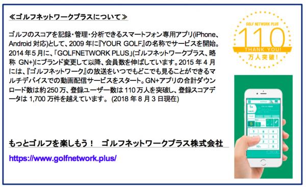 ゴルフネットワークプラス株式会社(東京都江東区・代表取締役社長 菅原 崇)が提供する登録ユーザー数110万人以上、国内ダウンロード数No.1のゴルフアプリ「ゴルフネットワークプラス」(以下GN+、ゴルフスコア管理、動画配信サービス)では、2018年8月9日(木)~8月12日(日)にミズーリ州ベルリーブCCで開催されるメジャートーナメント最終戦「2018全米プロゴルフ選手権」の練習ラウンド、全ラウンドを含む計36時間のライブ配信を8月8日(水)午前0時30分からスタートします。