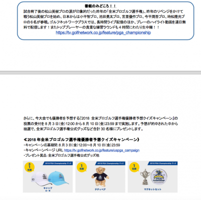 ・キャンペーンページURL:https://tv.golfnetwork.co.jp/feature/uspga_campaign