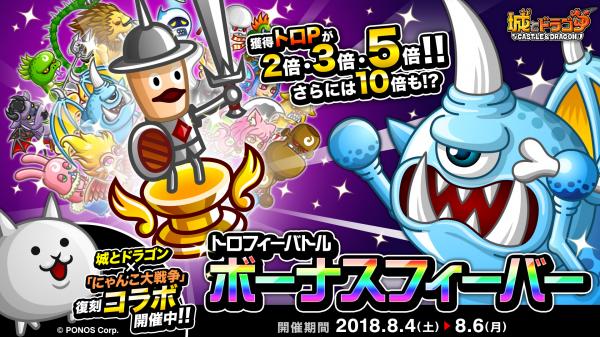 株式会社アソビズム(本社:東京都千代田区、代表取締役:大手智之)は、App Store・Google Playにて好評配信中の『城とドラゴン』で、「トロフィーバトル」および「ボーナスフィーバー」を2018年8月4日(土)より開催いたします。