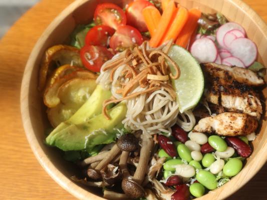 メニュー名:SOBA BOWL ~蒸し鶏のハニーマスタードドレッシング~