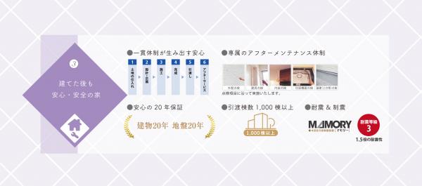 マックホームでは家を建て売るだけでなく、その家に住む人の安心や快適を提供いたします。専属のアフターメンテナンス体制や安心の建物・地盤20年保証、最高の耐震等級3の取得など、家を通じて将来にわたる住まいの「安心・快適」を生み出していきます。