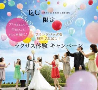 日本最大のバッグシェアサーサービス「ラクサス」を運営する、ラクサス・テクノロジーズ株式会社(本社:広島県広島市、代表取締役社長:児玉 昇司、以下「ラクサス」)と、全国でウェディングプロデュースを手がける婚礼大手の株式会社テイクアンドギヴ・ニーズ(本社:東京都品川区、代表取締役社長:岩瀬 賢治、以下「テイクアンドギヴ・ニーズ」)は、2018年7月31日より「ラクサス体験キャンペーン」を実施します。