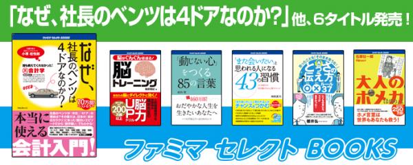 ゴマブックス株式会社(所在地:東京都港区、代表取締役社長:赤井 仁)は、2018年8月7日(火)より、コンビニエンスストア「ファミリーマート」店舗にて販売する『ファミマセレクトBOOKS』の展開店舗が全国約1万2千店舗(※)に大幅拡大したことを発表します。「なぜ、社長のベンツは4ドアなのか?」(著:小堺桂悦郎)など、人気の書籍6タイトルがファミリーマート店舗にてお買い求めいただけます。本企画は、株式会社ファミリーマートとゴマブックスが協力し、人気の電子書籍を店舗で販売するものとなります。