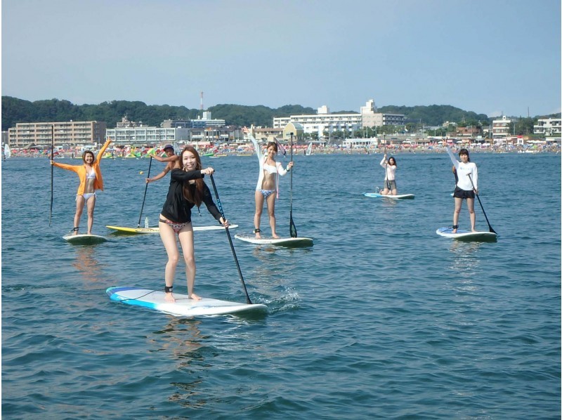数多くの別荘や高級リゾートが並ぶ逗子・葉山エリアは、都心部から短時間で移動ができるため、関東でも有数のSUP体験スポットとなっています。SUP体験後に近隣のお洒落カフェで一息することもできるので特に若い女性の方を中心に人気エリアです。