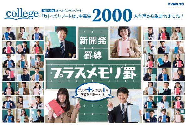 この度、学習帳を中心としたノート製品メーカーの株式会社キョクトウ・アソシエイツ(本社:大阪府大阪市、代表取締役社長:亀谷 穣)は、学ぶこと、書くこと、成長に合わせて今のあなたに最適なノートを提案することをコンセプトとして掲げたノートシリーズ ”college (カレッジ)”より、中高生の「もっと手早くキレイにノートに文字・図形を書きたい」ニーズに応える学習用ノート『プラスメモリ罫』(規格6号・セミB5/30枚/160円+税、他)を2018年8月中旬より全国の文具取扱い店舗にて発売開始いたします。