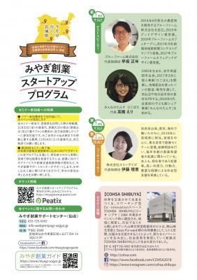 本年度、宮城県が実施する「見つける」「考える」「知る」「伝える」4つの視点から実施する3回のセミナーと宮城を体験する2日間の訪問ツアーで構成された【 みやぎ創業スタートアッププログラム 】が9月14日(金)よりスタートします。自分が地域で何をやりたいかを見つけてもらい、それをブラッシュアップし、宮城県で移住創業する先輩起業家を訪ねながら、実際に宮城に訪れるツアーを体感してもらう内容となっておます。