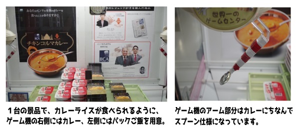そこで、国民食であると理由と、管理上の観点から、カレーに目が向き、レトルトカレーと電子レンジで調理出来るパックご飯が1つの台に一緒に景品として入っていれば、ゲームセンターでカレーライスが食べられる!!と考えました。