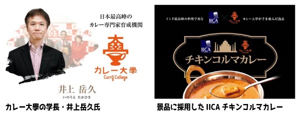 中村の熱意に、「食」でゲーム業界を盛り上げましょう!と、一肌脱ぐことを決意した井上氏により、カレー業界では注目され話題騒然の、出せばすぐに完売してしまう、入手が難しい高級レトルトカレーを景品として使うことを企画頂きました。それがIICAチキンコルマカレーです。