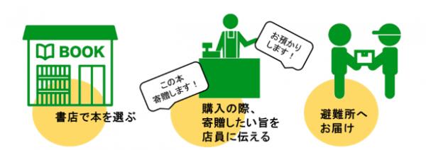 3.期間終了後に日販広島支店が、呉市役所や三原市役所を通じて各避難所や施設へお届けします。