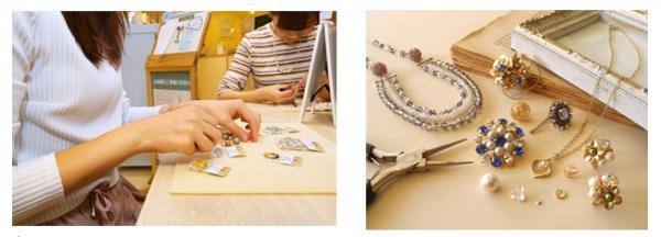 ●店内の手作りスペースを利用して、お好きなデザインのアクセサリーが作れます。