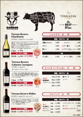 【その2】限定100名様!アルゼンチン・ビーフワイン「テラザス・3種」ボトル¥4,900をオープニング記念特価「¥3,900」にてご提供!この機会に「肉とワイン」のマリアージュをお楽しみください!