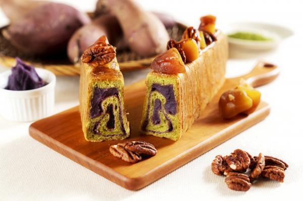 紫芋餡と河越抹茶を練りこんだブリオッシュ生地をデニッシュ生地で巻いて焼き上げました。芋の風味とともに、外はザクっ!中はふわっ!二つの異なる食感が楽しめます。
