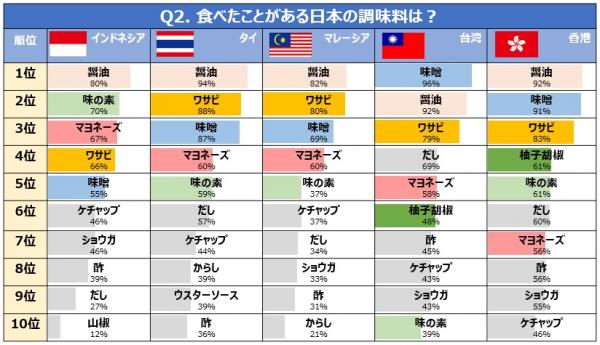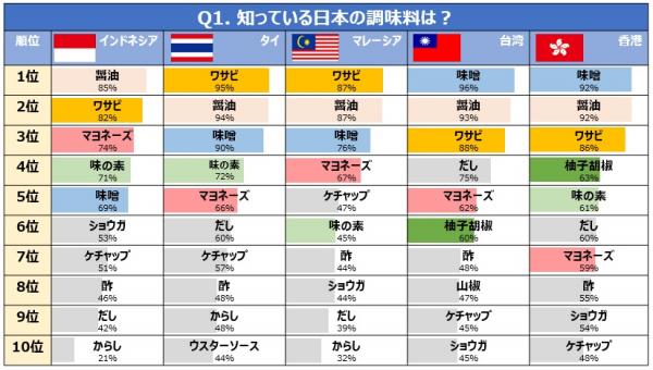 それでは、香港・インドネシア・マレーシア・台湾・タイのアジア5カ国の日本好きな人たちから聞いた日本の調味料をご紹介します。
