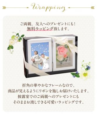 華やかなフレームに、リボンのラッピングを施してお届けいたします。ラッピングに料金はいただきません。