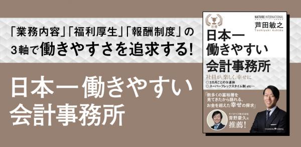 ビジネス書の出版や企業研修を手掛ける株式会社クロスメディア・マーケティング(本社:東京都渋谷区、代表取締役:小早川幸一郎)は、税理士法人ネイチャー国際資産税 代表税理士 芦田 敏之(あしだ・としゆき)氏執筆による『日本一働きやすい会計事務所』を8月7日(火)に刊行致しました。